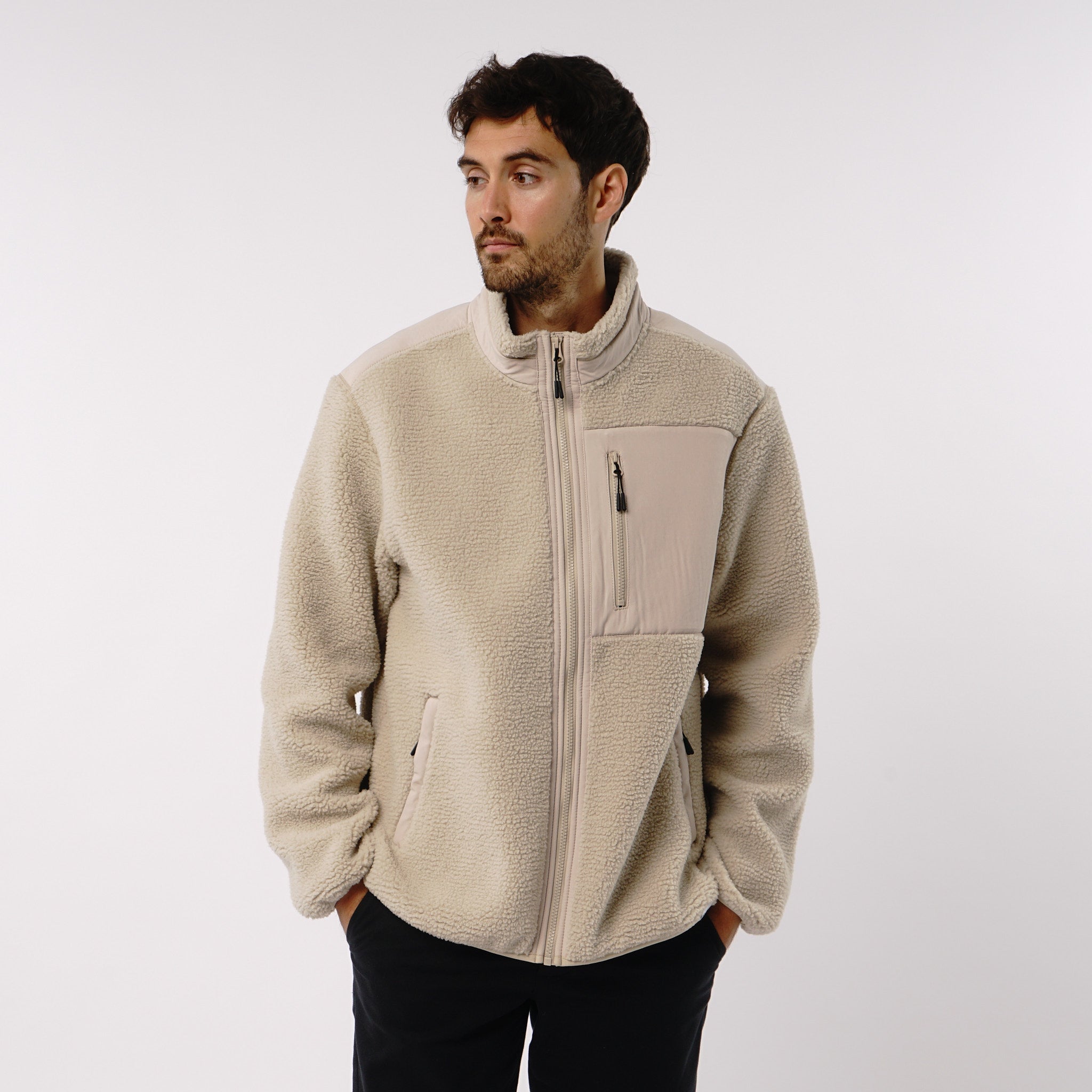 Omnitau Men's Burford Oversized Full Zip Fleece - Cream