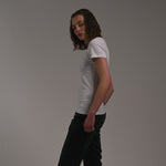 The fitted design is both flattering and comfortable, hugging your curves in all the right places. The shirt features a crew neckline and short sleeves, making it a versatile piece that can be worn on its own or layered under a jacket or sweater.